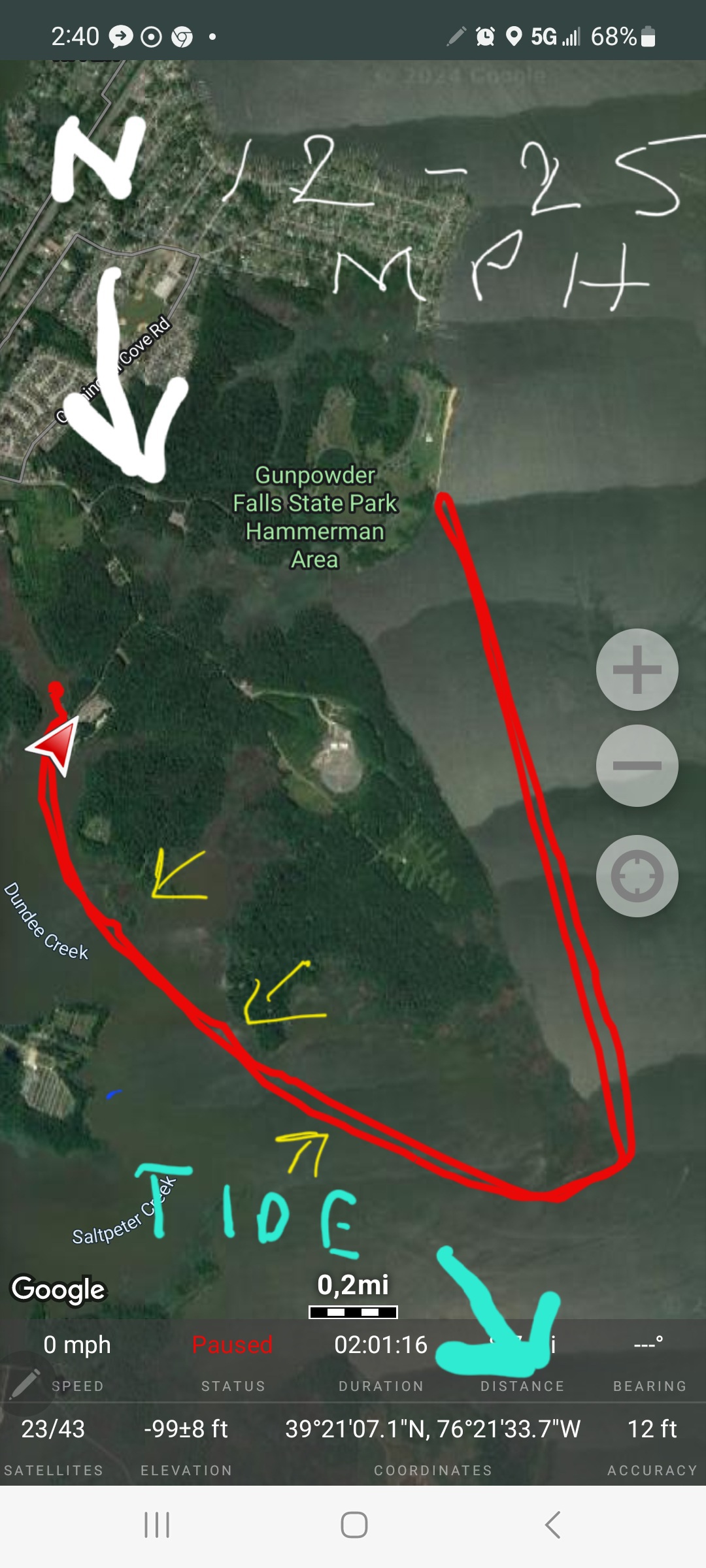 While the method of calculating hull speed can be argued (the dimensions used to calculat hull lenth is the overall length vs. length on the load water line), yet the implication of this raw data is interesting. My grand daughter’s avg speed is 1.89 mph slower than my average speed, but realize that the 12 ft hull speed is a full mph slower than the 175 Tsunami. After factoring in hull speed penalties, for what it’s worth, she is only .4 mph behind my sister, and .89 mph behind me. Also, when considering that hull length favors speed, my sister isn’t far behind me when she is similarly conditioned; her best speeds nearly match my output if the limitations of the hull speed is factored in.