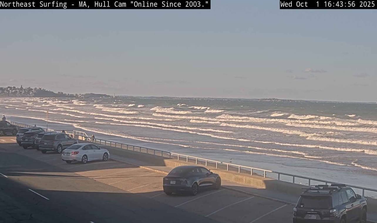 Incoming. Overhead and short period waves. Waiting for wave periods to lengthen a bit and for winds to go offshore for clean up.