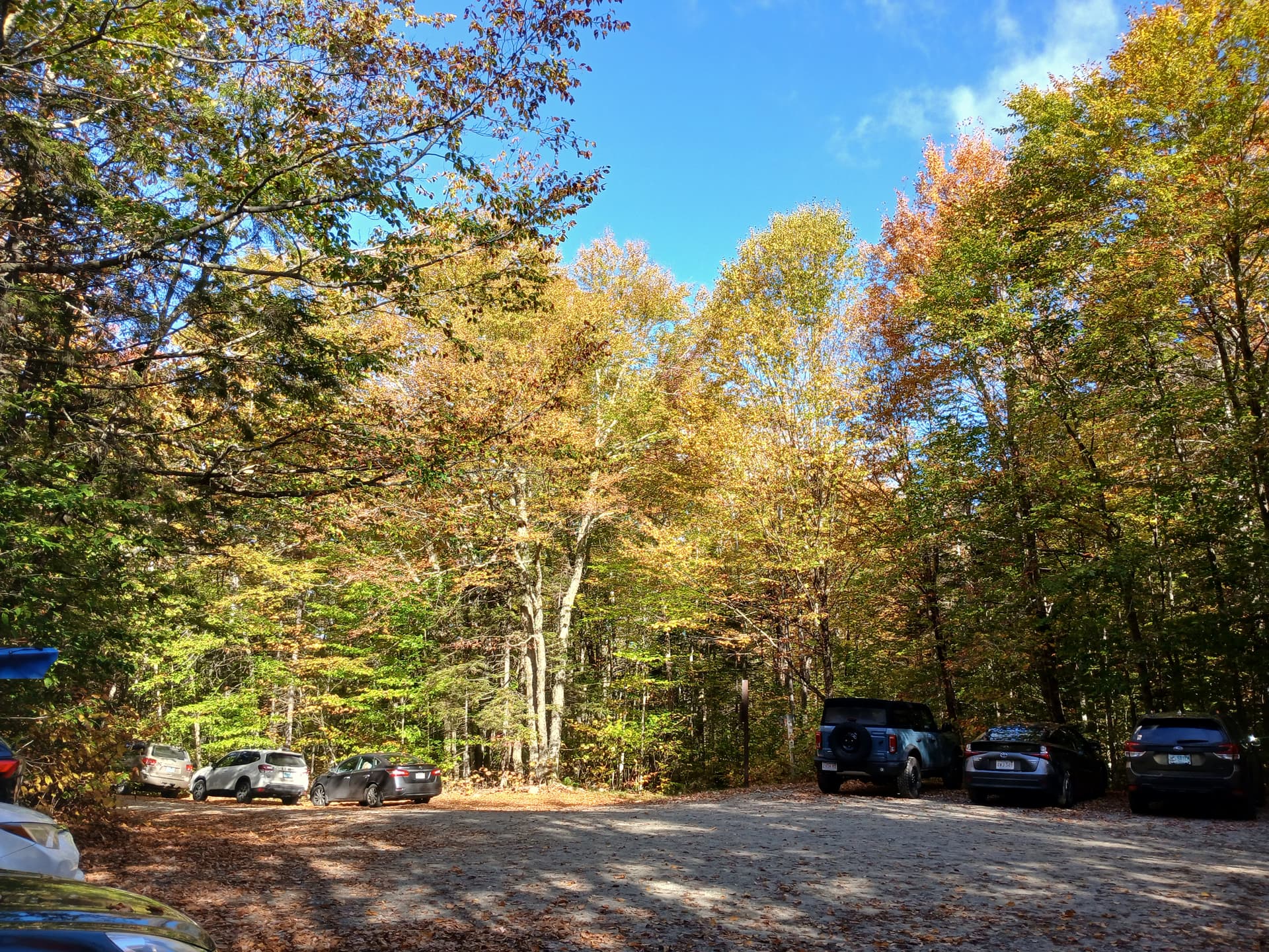 Made it to the trailhead parking lot. Foliage is at or near peak.
